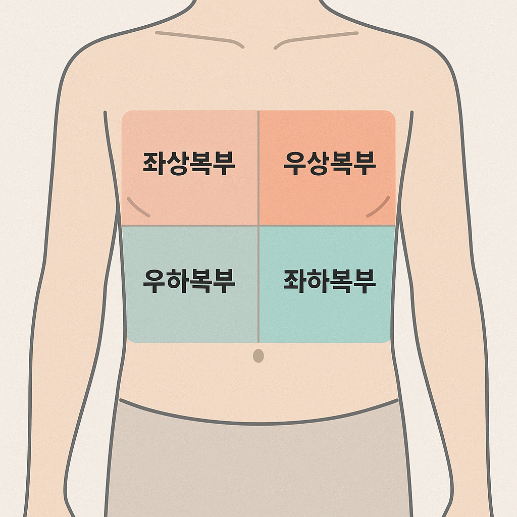 급성 복통은 단순한 소화 문제일 수도 있지만, 생명을 위협하는 응급질환의 신호일 수도 있어서 증상에 따라 신속하게 대응해야 합니다. 아래는 복통의 위치별로 의심할 수 있는 질환들을 정리해 보도록 하겠습니다.단순화된 네 구역으로 상복부는가슴 바로 아래(명치 아래부터 배꼽 위까지)임1. 우하복부 통증 (배 오른쪽 아래)① 급성 충수염 (맹장염) - 초기: 배꼽 주위나 명치 부근에 둔한 통증 - 수 시간 후: 통증이 오른쪽 아래(우하복부)로 이동 - 증상: 발열, 오심(메스꺼움), 구토, 식욕 부진 - 진단 포인트: - 오른쪽 아랫배를 눌렀다 떼면 더 아픈 반동압통 - 걷거나 기침할 때 심해짐 - 위험: 방치 시 복막염으로 진행 → 응급 수술 필요2. 좌하복부 통증 (배 왼쪽 아래)① 게실염 (Divertic..